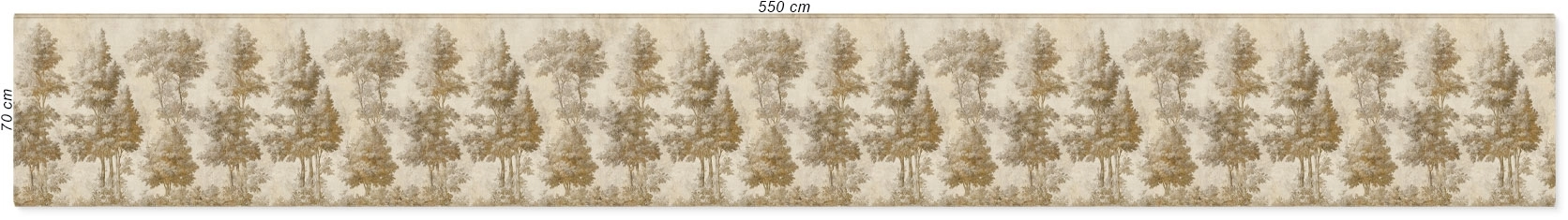 Un paysage forestier comme effleuré par le temps, où la lumière se dépose en fine poussière d’or. Les arbres semblent dessiner une fresque ancienne, patinée par les siècles, comme un fragment retrouvé d’un palais italien. Les tonalités chaudes et feutrées révèlent la douceur des pigments d’autrefois et apportent à l’espace une présence silencieuse, presque sacrée — un souffle végétal inscrit dans la pierre.