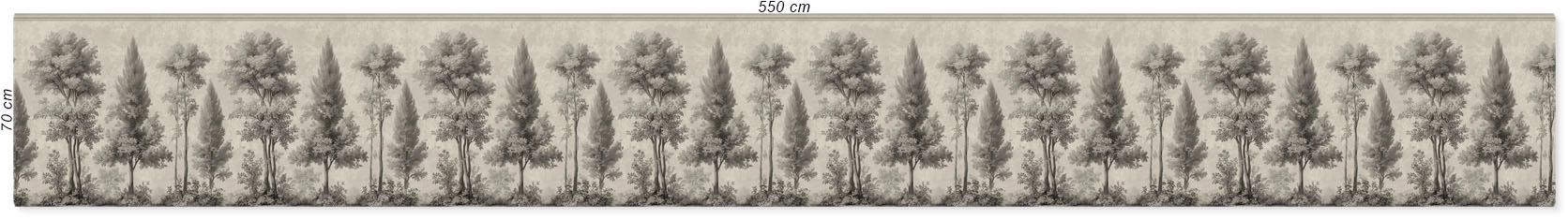 Un paysage baigné d’une lumière douce, où les arbres se découpent avec une précision presque picturale. Les gris lumineux et les contours délicats créent un décor serein, clair, comme traversé d’une clarté d’été. Chiara apporte aux murs une élégance lumineuse, respirante, naturellement apaisée.