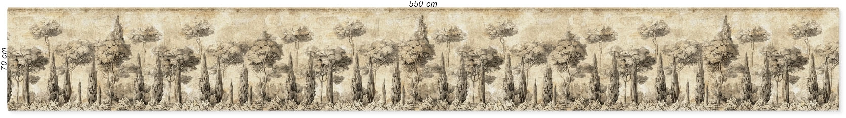 Un paysage doré par le temps, où les cyprès se dressent comme les gardiens d’un jardin antique. La lumière chaude glisse sur la patine du décor, révélant des nuances d’ocre et d’encre. Cipressi di Tivoli apporte aux murs une élégance italienne, solaire, délicatement intemporelle.