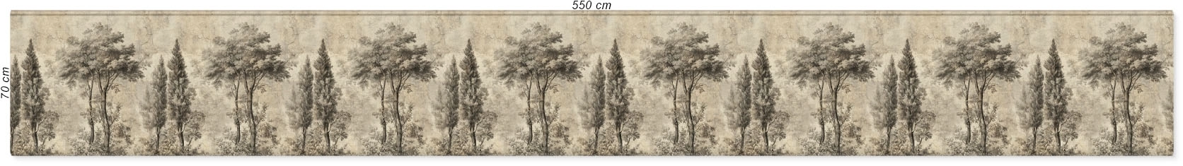 Un paysage lointain, adouci par une brume légère, où les arbres se détachent avec une grâce silencieuse. La patine claire évoque un mur ancien que la lumière effleure. Lontano offre aux murs une profondeur douce, aérienne, presque méditative.