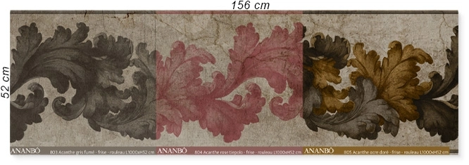 Ce rouleau échantillon réunit les 3 déclinaisons chromatiques de la Frise Acanthe afin d’en apprécier les tonalités, les détails et la finesse d’impression avant sélection.